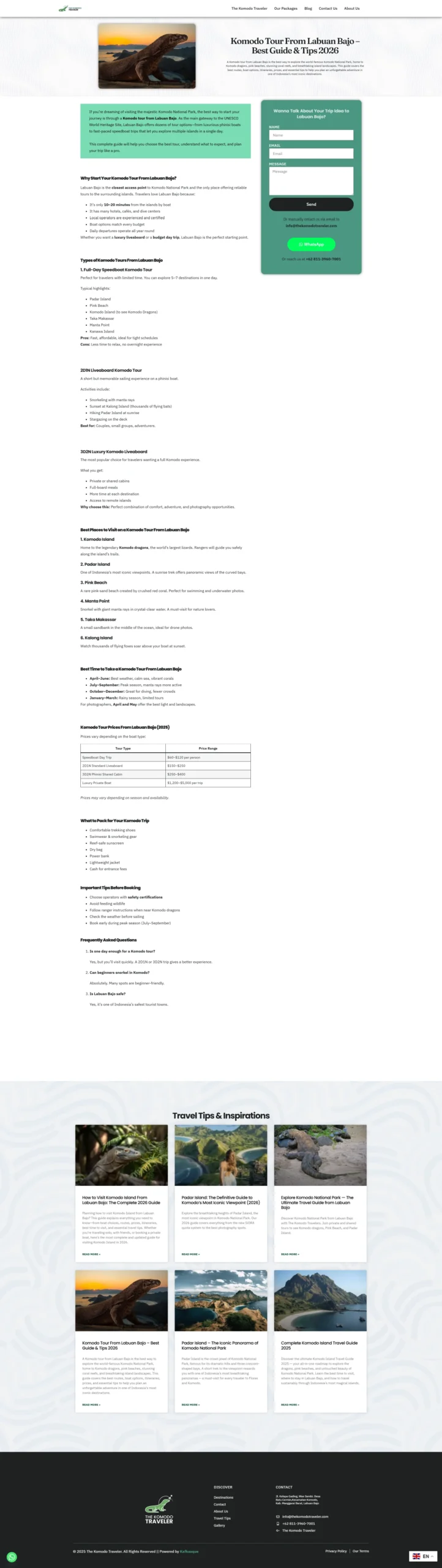 Successfully launched a professional digital gateway that saw an immediate surge in international inquiries within the first 90 days. The project delivered a scalable, high-performance platform that established The Komodo Traveller as a credible, top-tier operator in one of Indonesia’s most competitive niches.